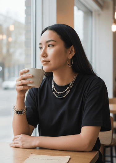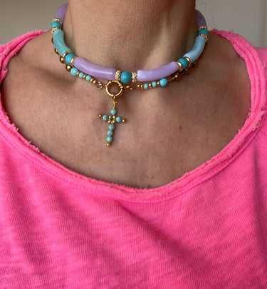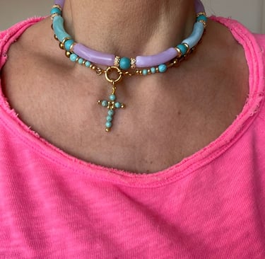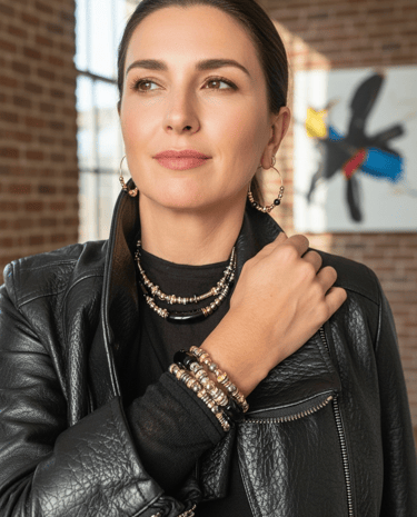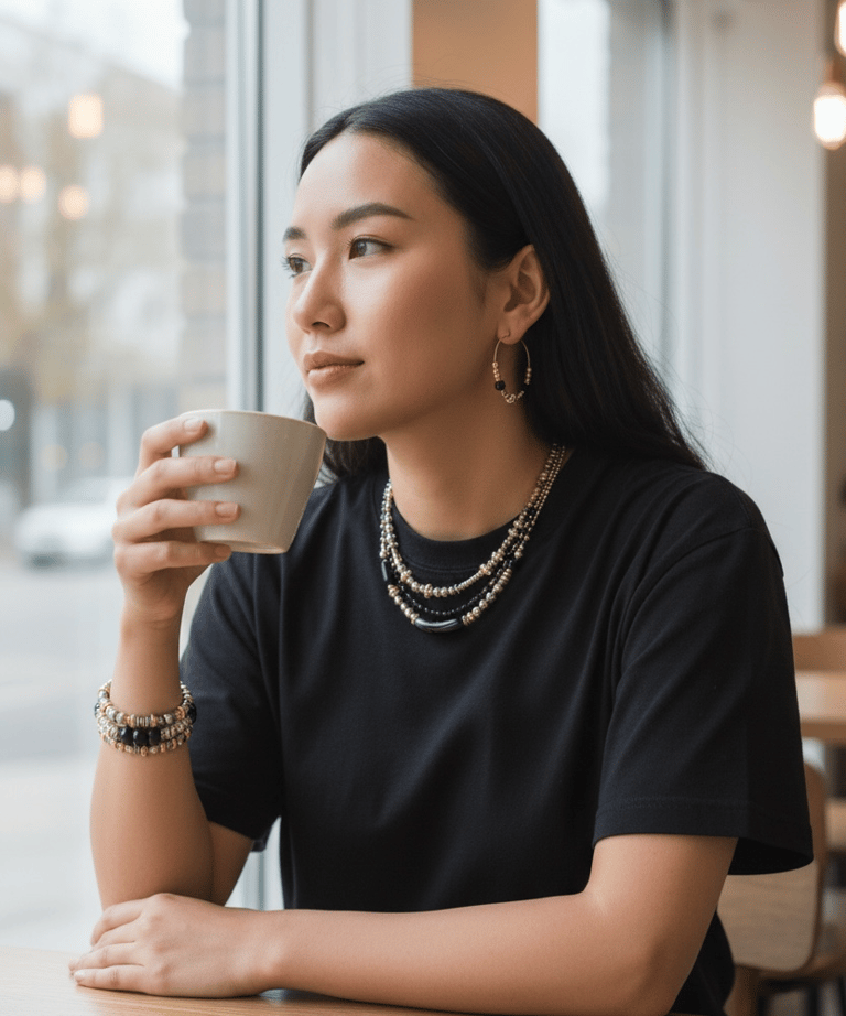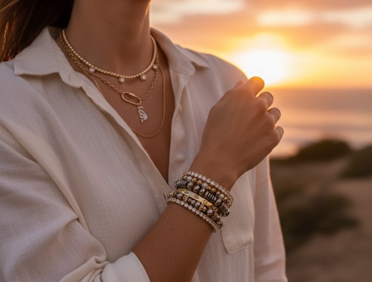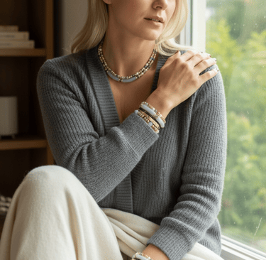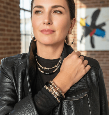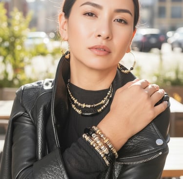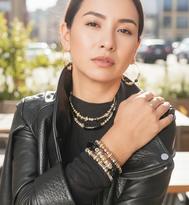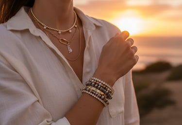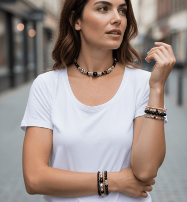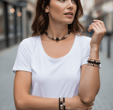 Chaque collier, bracelet et bijou est assemblé à la main avec des pierres naturelles, des finitions plaqué or et une attention particulière portée aux détails.